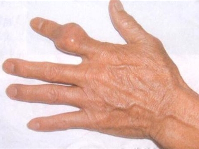 (2)长期痛风患者有发作于手指关节,甚至耳廓含软组织部分的病例。